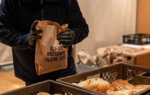 1. Um 04:50 Uhr bist du im Packraum in Rockstedt und packst zusammen mit 18 Bröös-Kollegen & Kolleginnen die Brötchen in die Tüten.