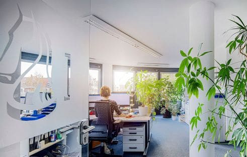 - klimatisierte Büros mit 2 bis max. 3 Leuten – kein Großraumbüro-Gewusel, aber auch keine Einsamkeit im stillen Kämmerlein