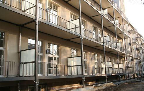 eigener Fertigungsstrecke, welche Balkone konstruiert, in ganz