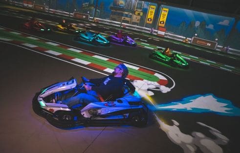 BattleKart ist sozusagen eine Spielkonsole, bei der die Spieler in echten, supersportlichen E-Karts sitzen!