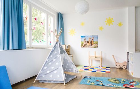 Liebevoll und professionell unterstützen und fördern wir jedes Kind ganz individuell anhand seines Entwicklungsstandes und bieten ihm den Raum, in kleinen Gruppen, seinen sozialen, kreativen und intellektuellen Erfahrungsschatz ständig zu erweitern.