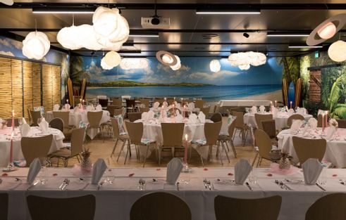Unser Tropenpflanzen-Restaurant liegt am Ufer des Waldsees mit Flamingos. Wir bieten köstliche internationale Küche, ergänzt mit Haus- und Saisonspezialitäten.