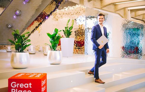 - Benefits wie firmeninterne Veranstaltungen, Getränke (Kaffee, Säfte, Mineralwasser) und Obst