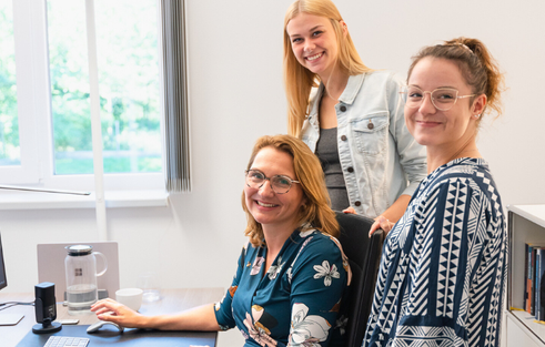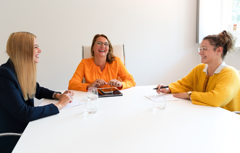 Erste Ansprechpartner sind deine Kolleginnen. Und mit deiner Chefin Sandra gibt es feste Termine für Fragen und Austausch.