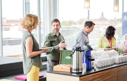 Unsere Veranstaltungen finden in den exklusiven Räumen von VIVO SCOUT statt – im 6. Stock mit einem atemberaubenden Blick über Nürnberg bis hin zur Burg. Wenn du möchtest, kannst du dir sogar einen Arbeitsplatz in dieser Umgebung sichern und die Vital Lounge mit dem BEMER Evo für deine Präsentationen nutzen.